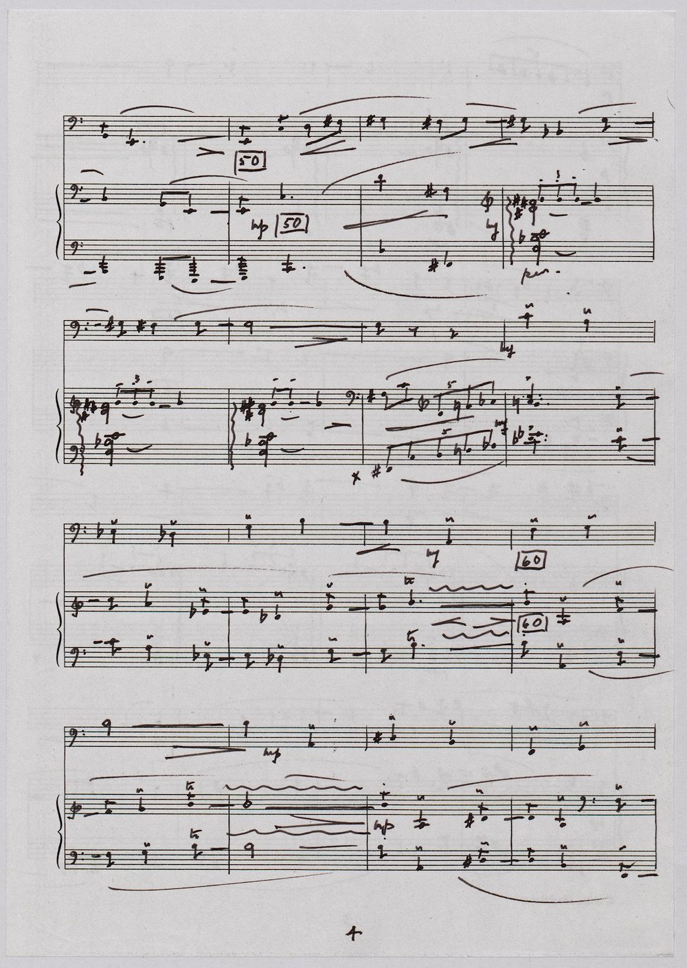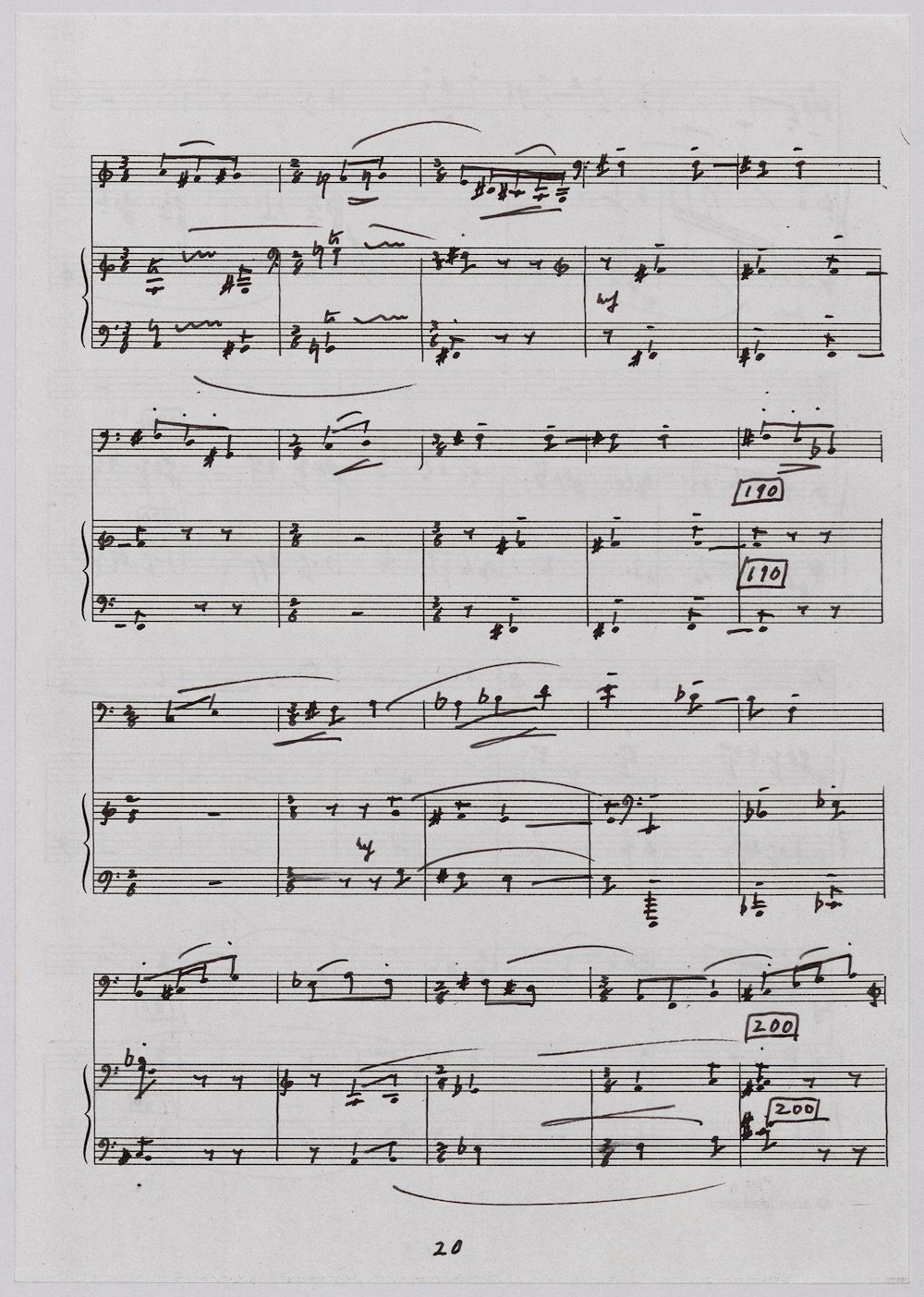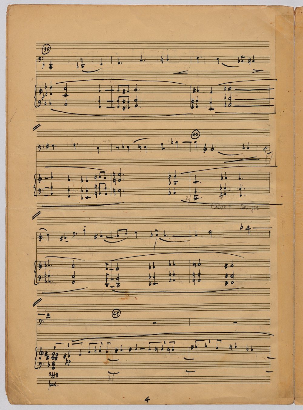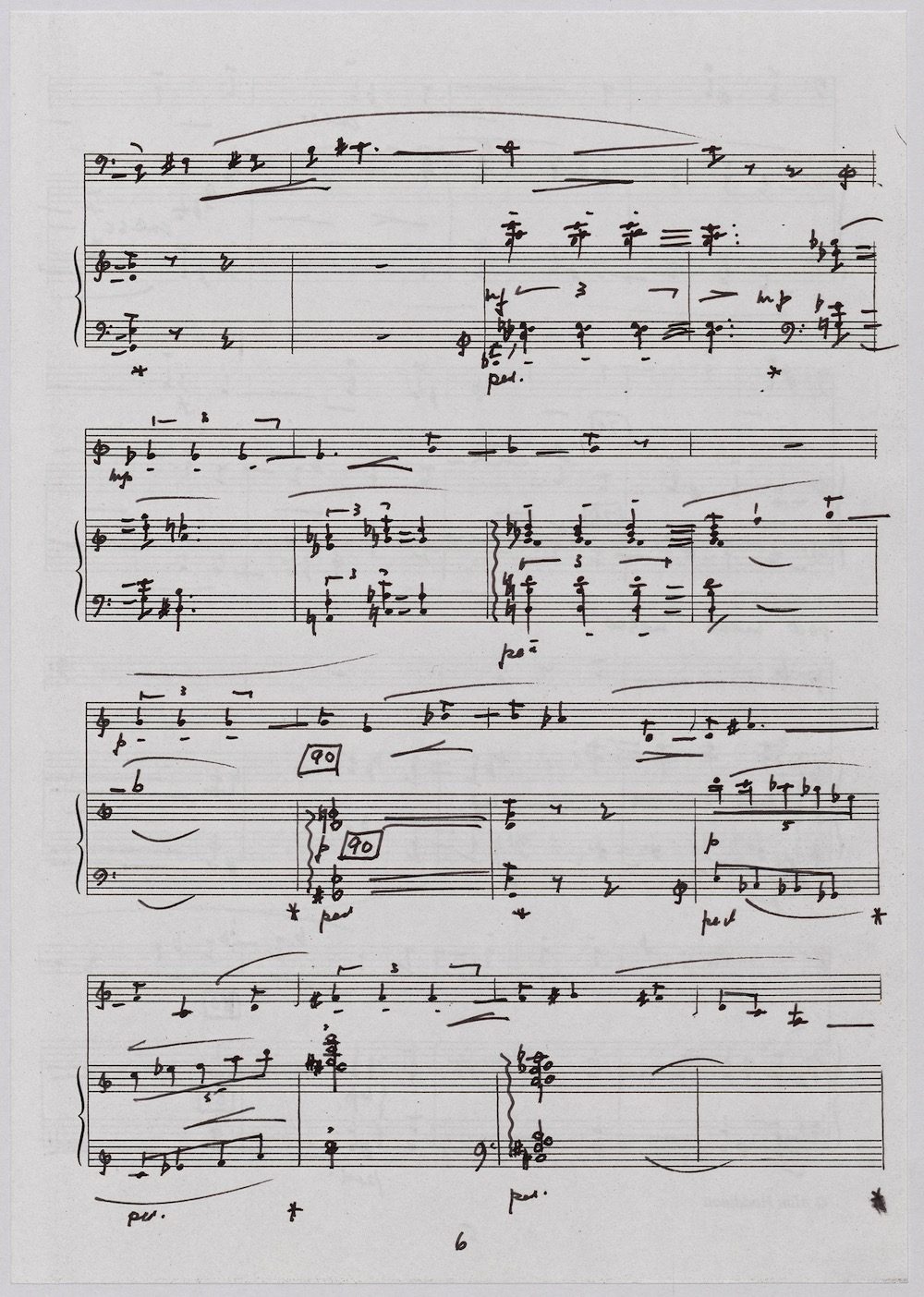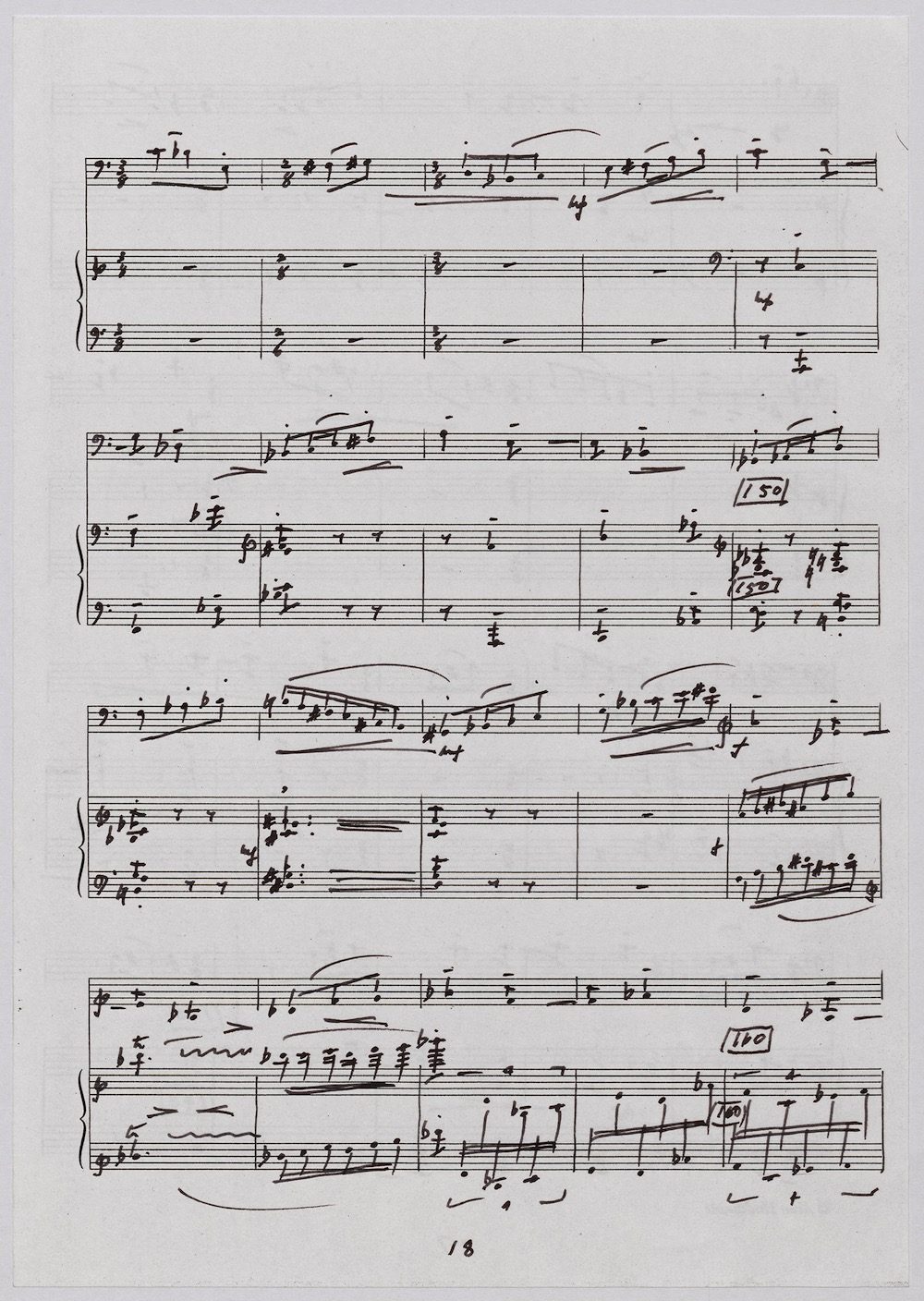 The first of Hoddinott’s three cello sonatas was composed in 1970. In 1967 he became Professor and Head of the Music Department at Cardiff University (his alma mater) where the faculty staff included a resident piano quintet. Hoddinott did much to promote the Ensemble’s wider profile in terms of recordings, broadcasts, festival concerts and performances outside Wales. This Sonata is a fine example – composed for cellist George Isaac and pianist Eric Harrison to play at London’s Wigmore Hall on May 15th, 1970, with an Argo (Decca) recording to follow (not currently available or transferred to cd). In two connected movements lasting some 15 minutes, a brooding Andante leads via an unaccompanied cadenza into a lively Allegro molto which transforms much of the material already heard. The screen shows the composer’s final manuscript score, which was published by OUP in 1970.The two subsequent sonatas were composed in 1977 (op.96 No.1) and 1996 (op.159) respectively.