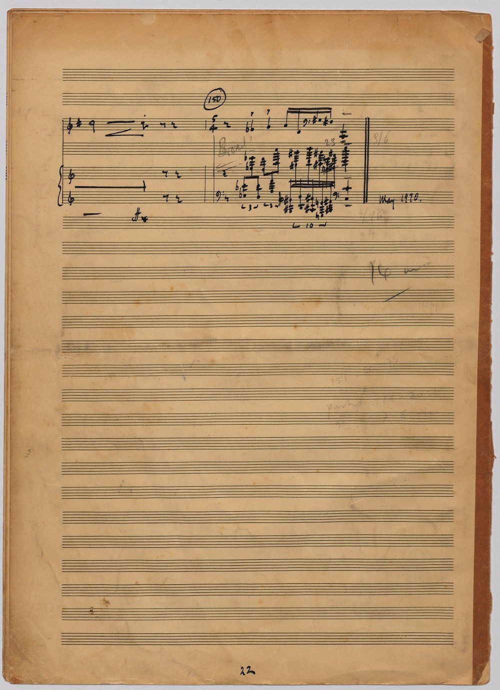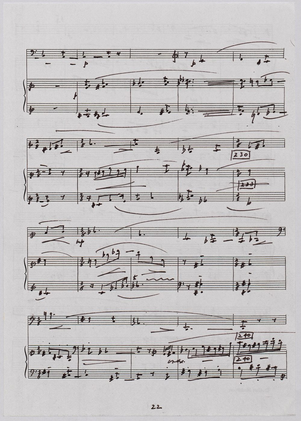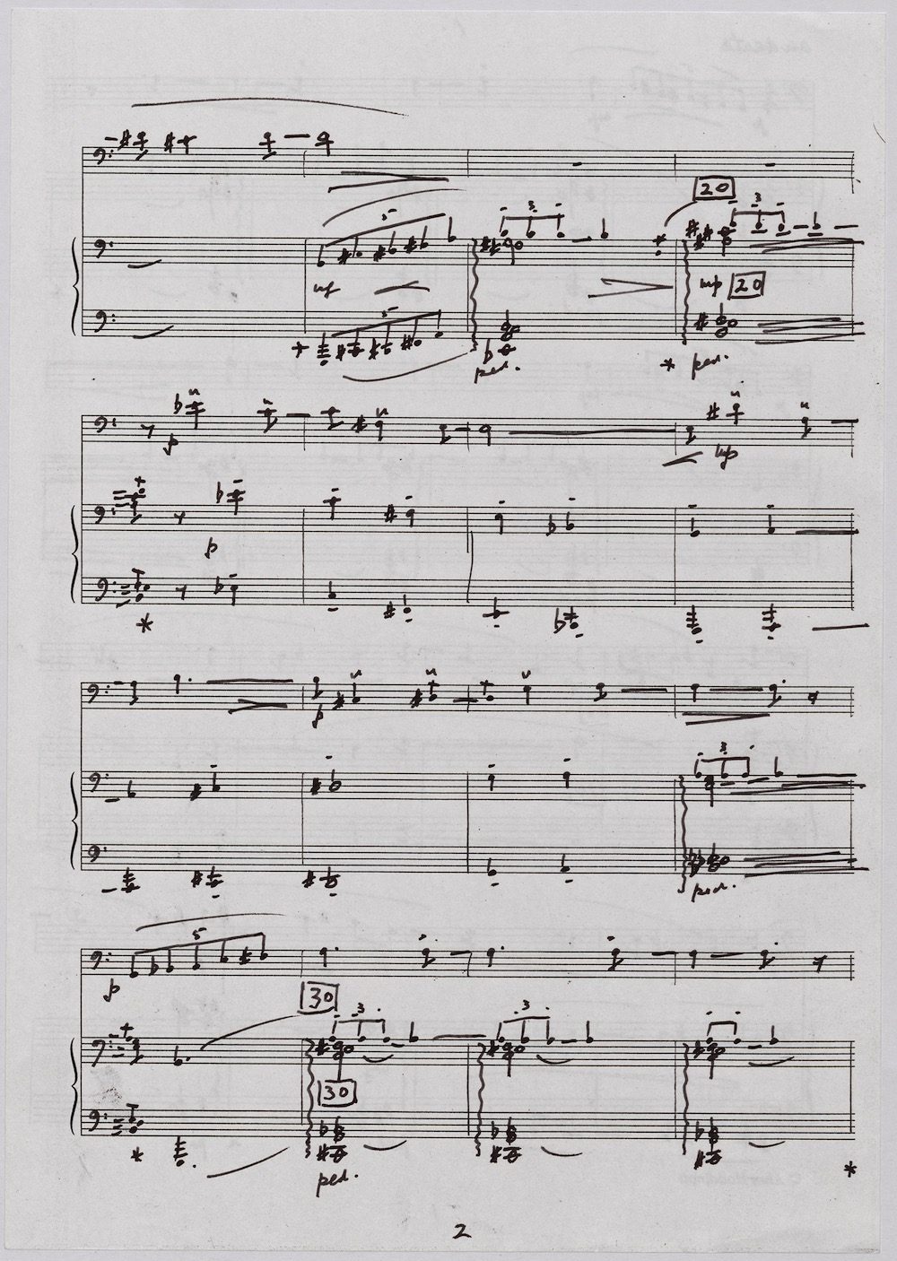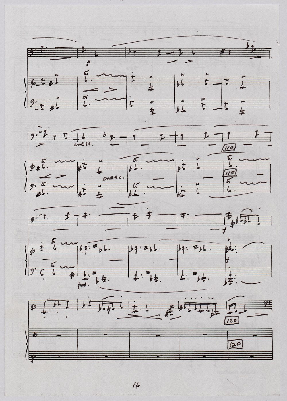 The first of Hoddinott’s three cello sonatas was composed in 1970. In 1967 he became Professor and Head of the Music Department at Cardiff University (his alma mater) where the faculty staff included a resident piano quintet. Hoddinott did much to promote the Ensemble’s wider profile in terms of recordings, broadcasts, festival concerts and performances outside Wales. This Sonata is a fine example – composed for cellist George Isaac and pianist Eric Harrison to play at London’s Wigmore Hall on May 15th, 1970, with an Argo (Decca) recording to follow (not currently available or transferred to cd). In two connected movements lasting some 15 minutes, a brooding Andante leads via an unaccompanied cadenza into a lively Allegro molto which transforms much of the material already heard. The screen shows the composer’s final manuscript score, which was published by OUP in 1970.The two subsequent sonatas were composed in 1977 (op.96 No.1) and 1996 (op.159) respectively.