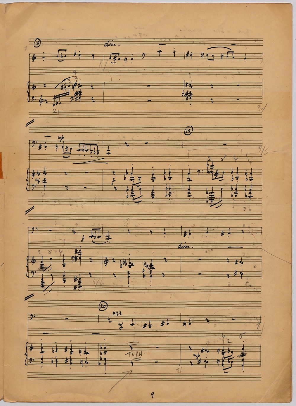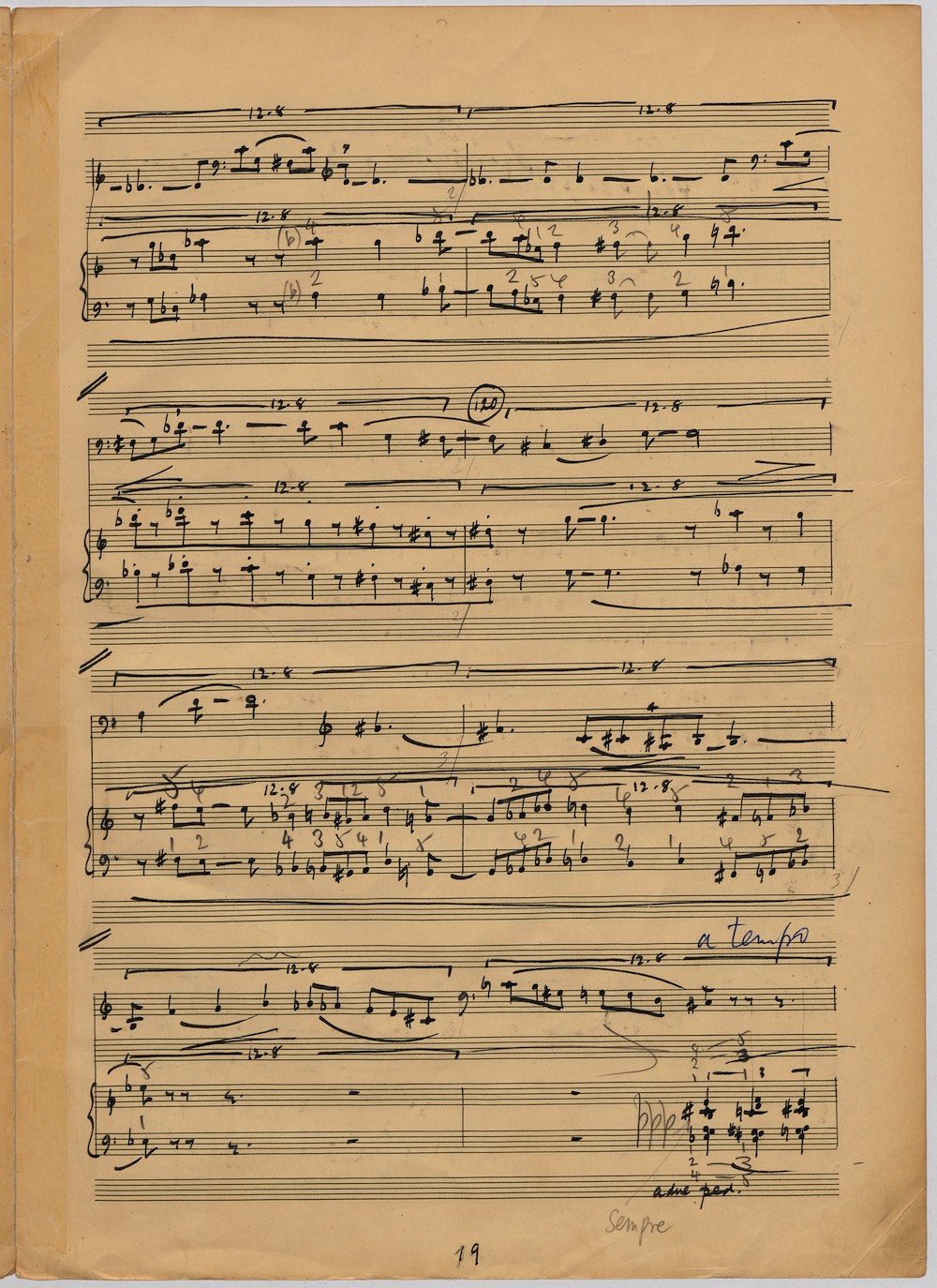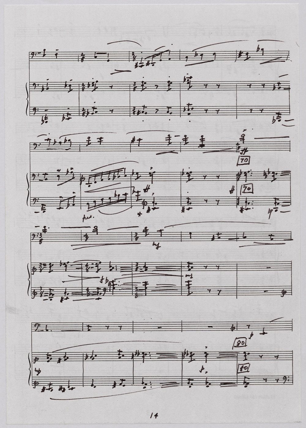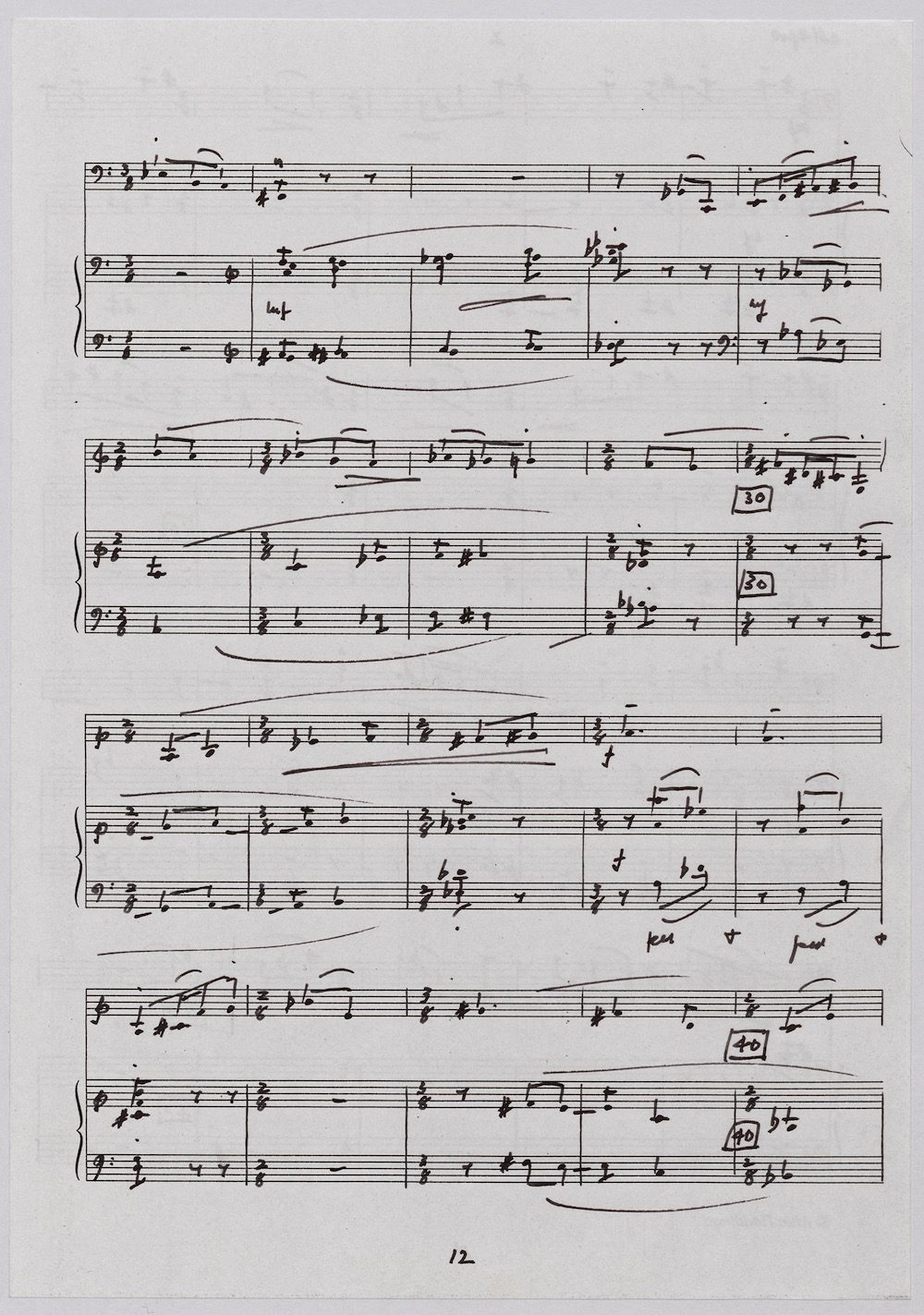 The first of Hoddinott’s three cello sonatas was composed in 1970. In 1967 he became Professor and Head of the Music Department at Cardiff University (his alma mater) where the faculty staff included a resident piano quintet. Hoddinott did much to promote the Ensemble’s wider profile in terms of recordings, broadcasts, festival concerts and performances outside Wales. This Sonata is a fine example – composed for cellist George Isaac and pianist Eric Harrison to play at London’s Wigmore Hall on May 15th, 1970, with an Argo (Decca) recording to follow (not currently available or transferred to cd). In two connected movements lasting some 15 minutes, a brooding Andante leads via an unaccompanied cadenza into a lively Allegro molto which transforms much of the material already heard. The screen shows the composer’s final manuscript score, which was published by OUP in 1970.The two subsequent sonatas were composed in 1977 (op.96 No.1) and 1996 (op.159) respectively.