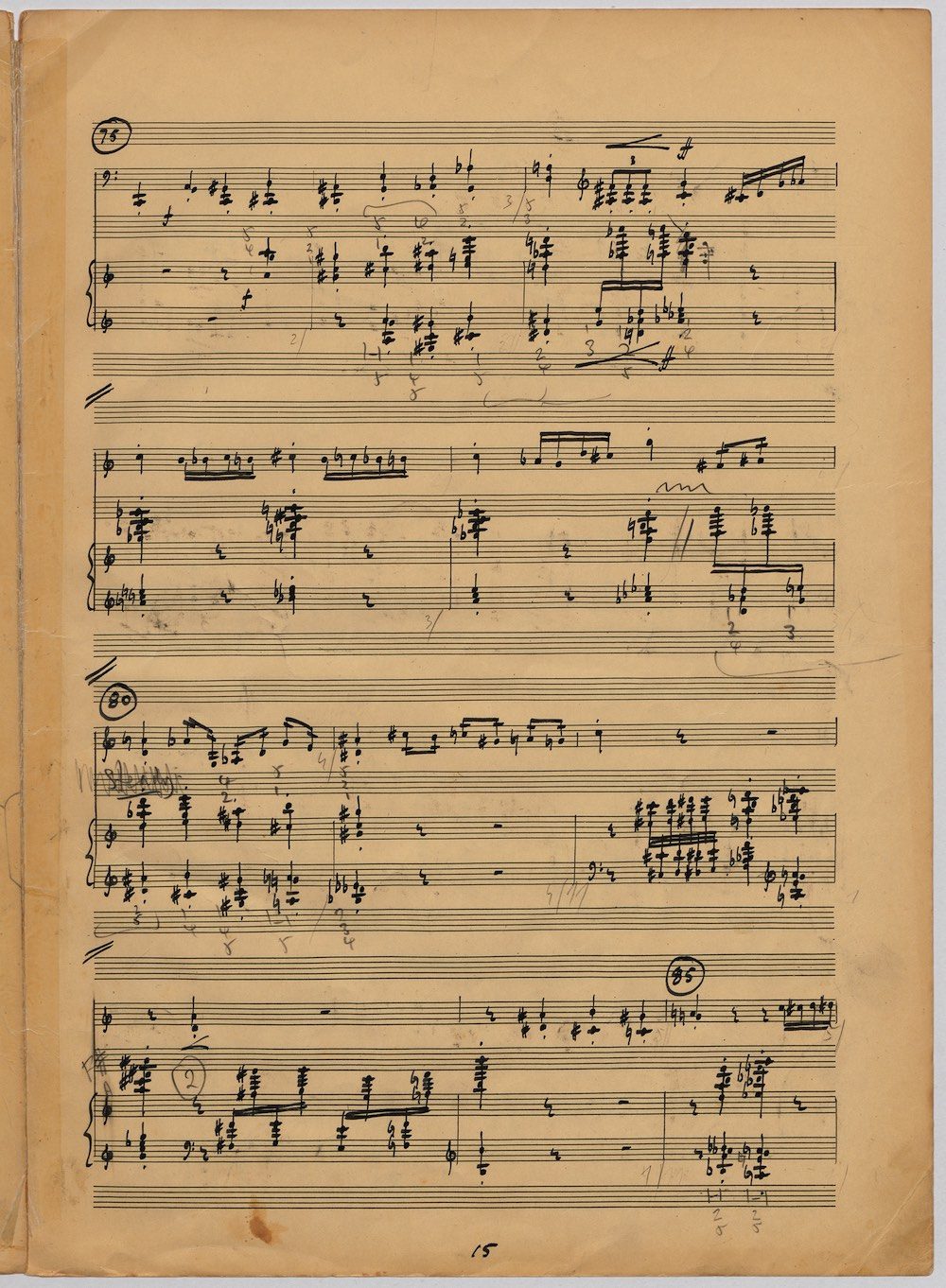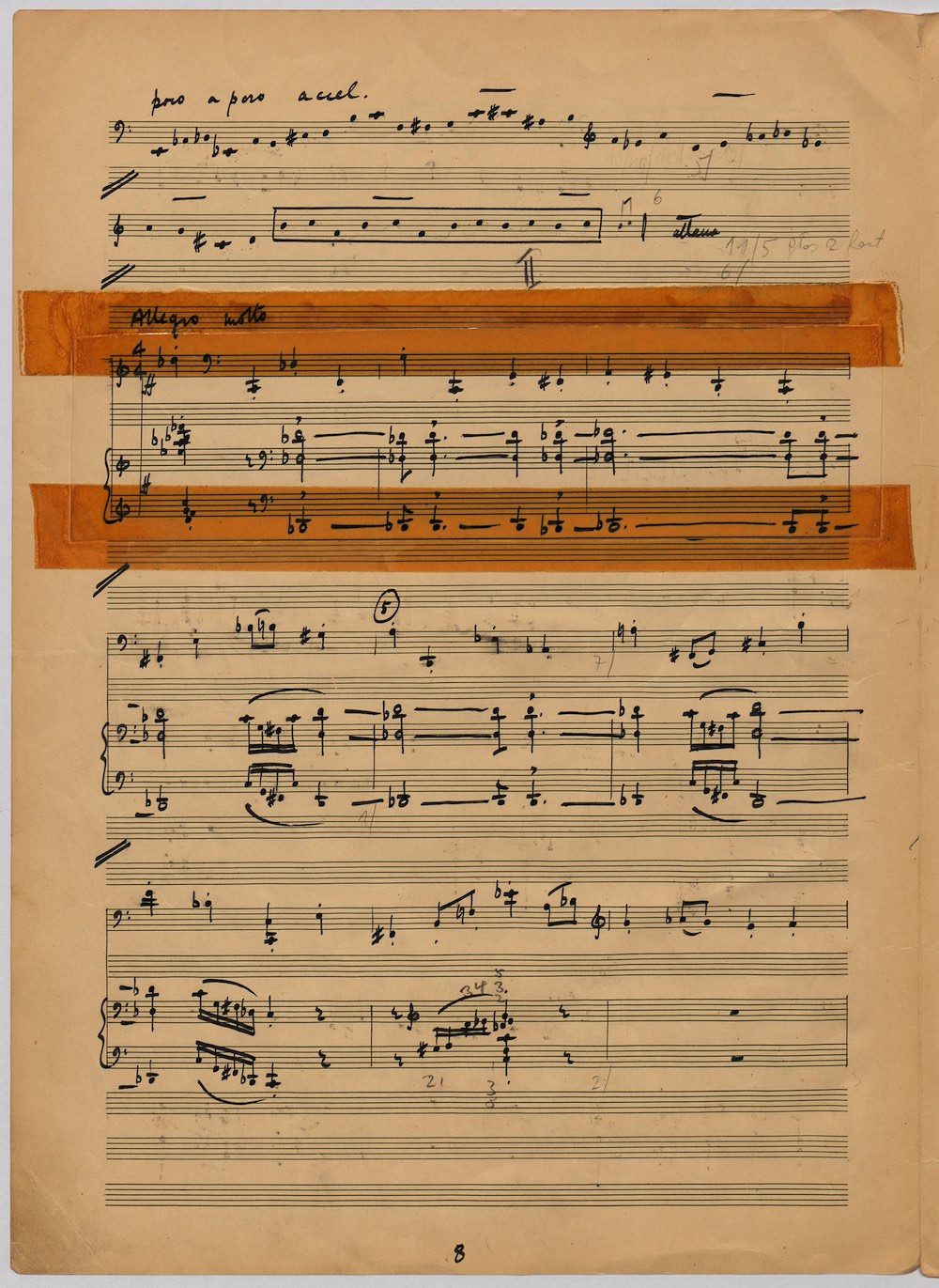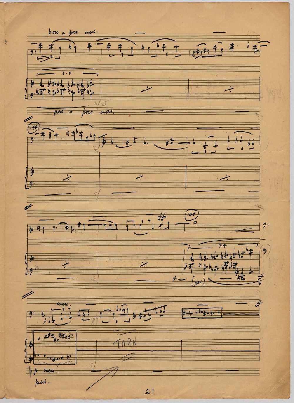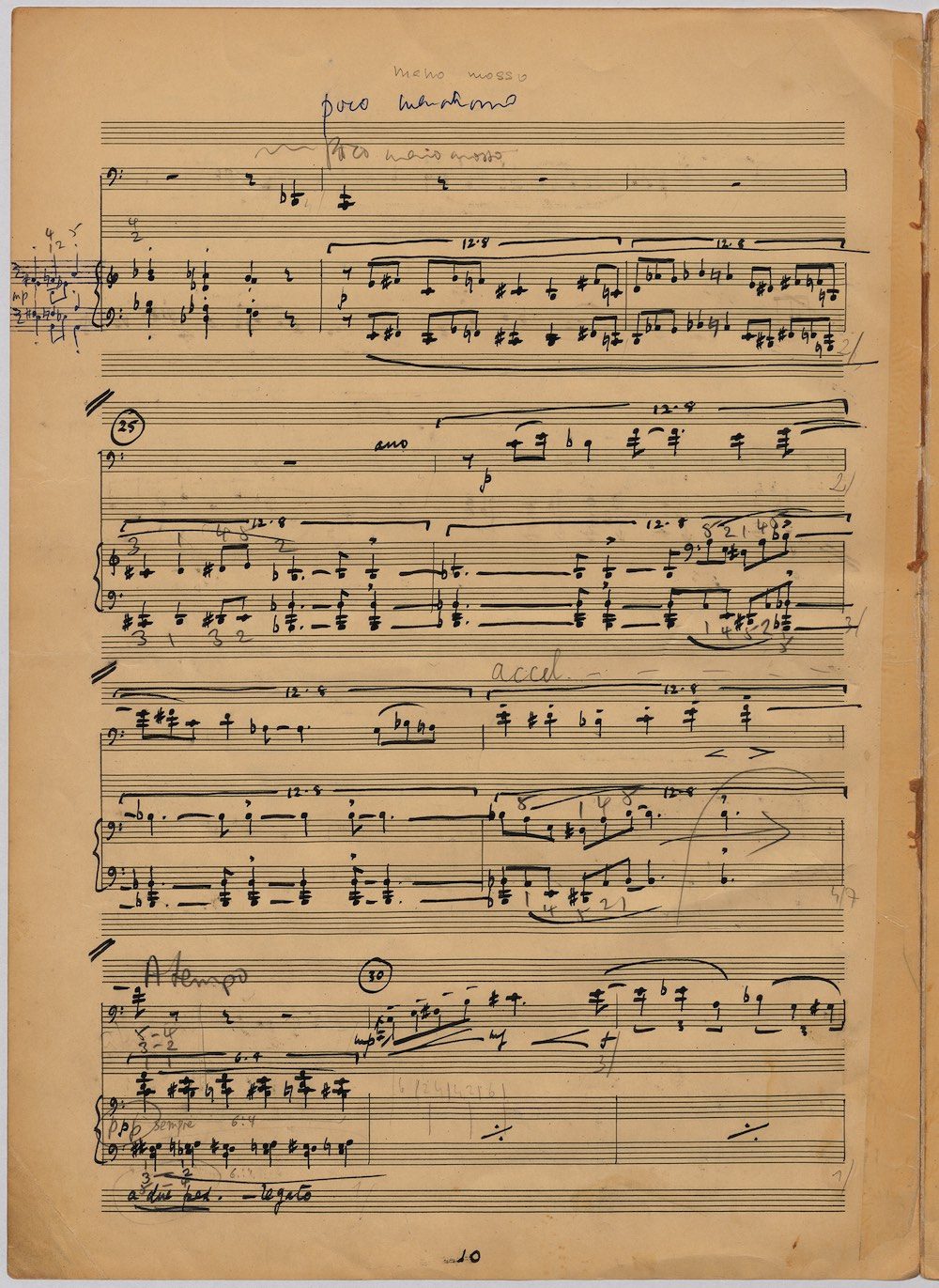 Hoddinott was always keen to respond to gifted young instrumentalists and singers and one of the performers with whom he developed a close bond in his later years was the exceptional young euphonium player David Childs. In 2002 he wrote a Concerto for him entitled ‘The Sunne Rising’, op.180, which was a punning reference (via John Donne) to the fact that Childs was the son of another very distinguished brass player and conductor, Robert Childs. David went on to play the Concerto at the 2004 Proms in London and later recorded it for Chandos. Far from exhausting his interest in this noble instrument Hoddinott went on almost immediately to follow the Concerto with a Sonata, which Childs, together with pianist John Wilson premiered at the Wigmore Hall on April 7th 2003. Its two movements – Andante and Allegro – last around ten minutes and deliberately emphasise the lyrical eloquence and rhythmic agility of an instrument not often associated with either characteristic. The screen shows the final manuscript which was then published by Oriana Publications in 2003.
