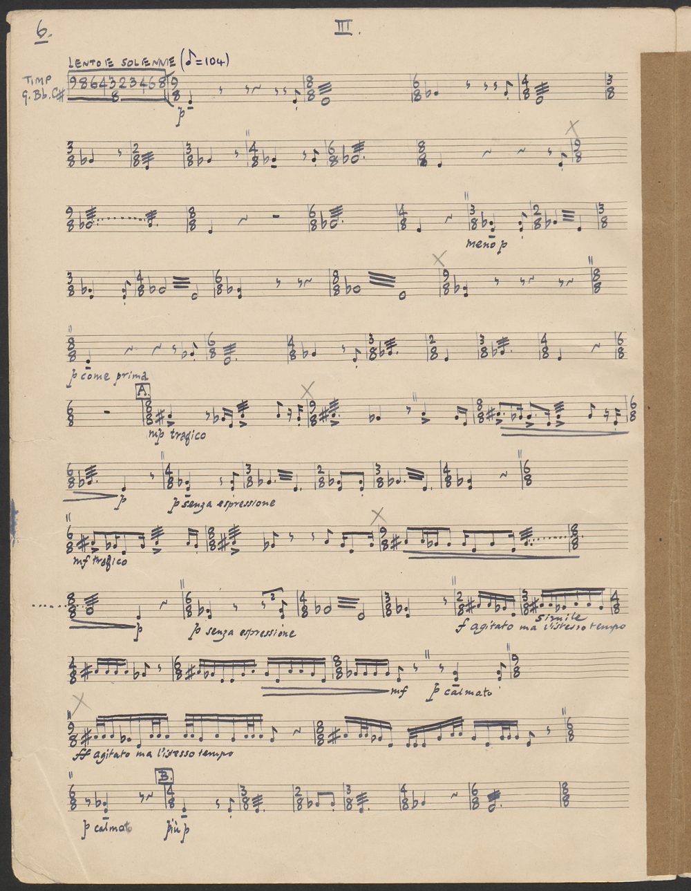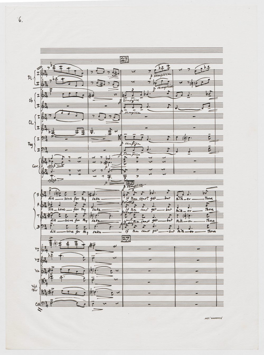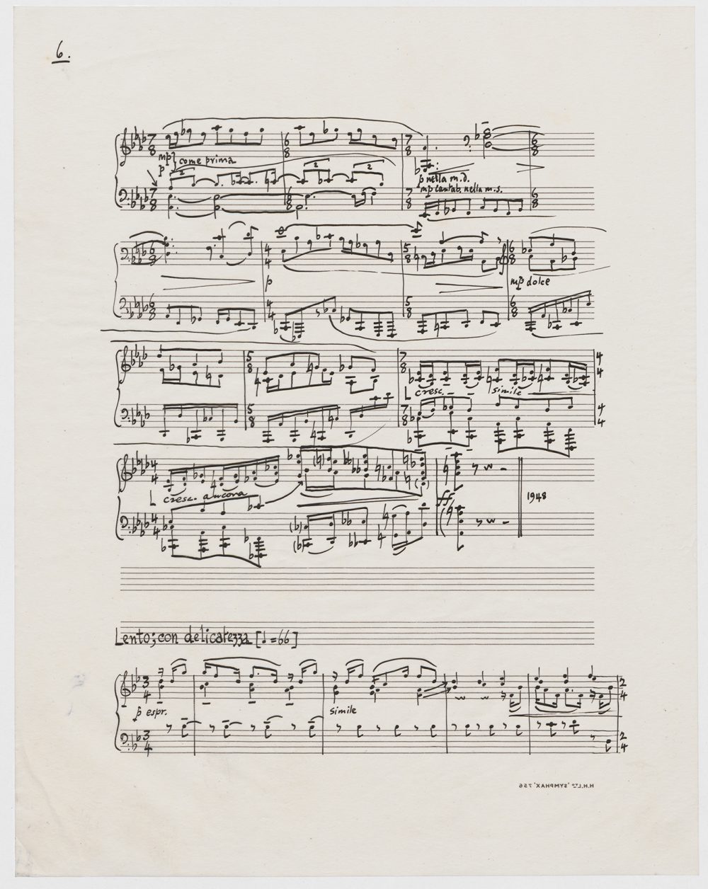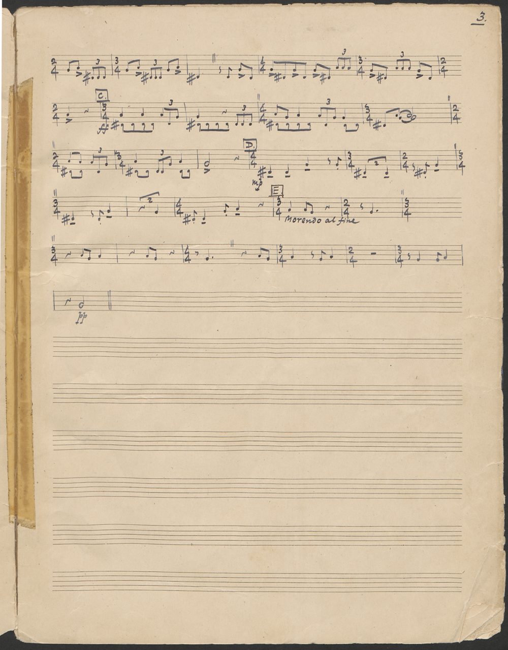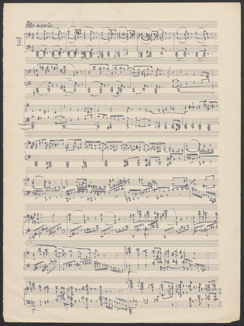 Chamber music was central to Jones’s work. Surprisingly for such a fine pianist, he wrote little for the instrument after discarding a considerable body of works composed in his youth. His first set of Bagatelles was composed during 1943-5 and explores a wide range of emotions and pianist textures. In this manusctript, II-V correspond to 1-4 in the published edition. I and VI were not published although VI was recorded by Llŷr Williams on the disc of Bagetelles by Tŷ Cerdd.