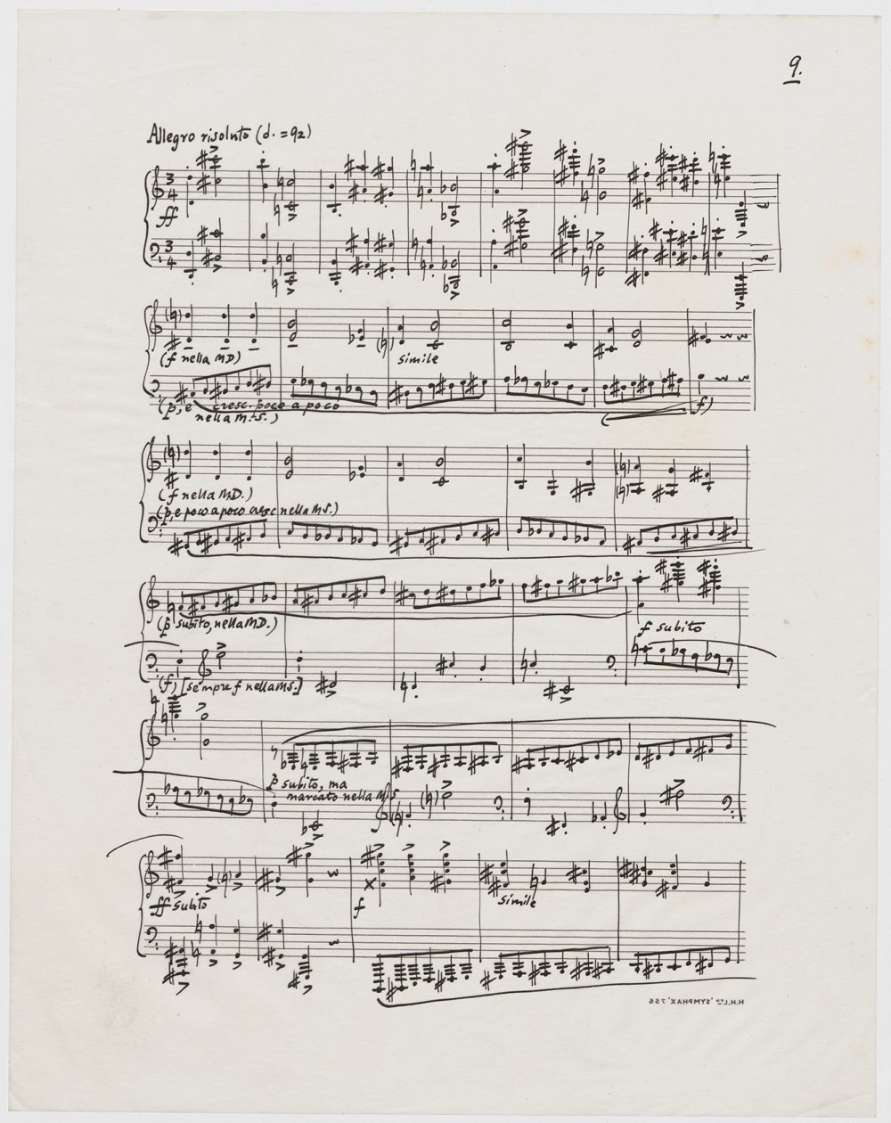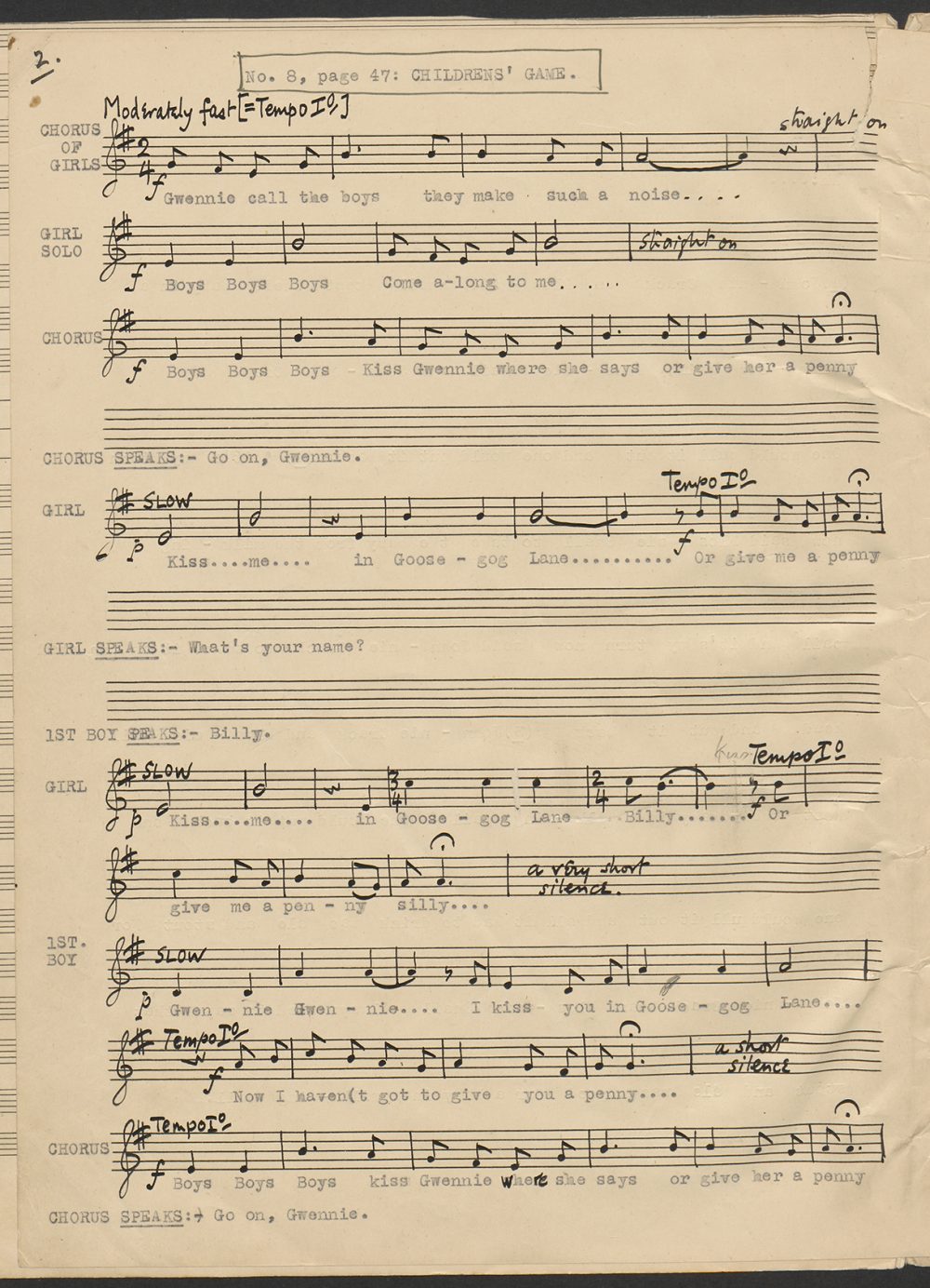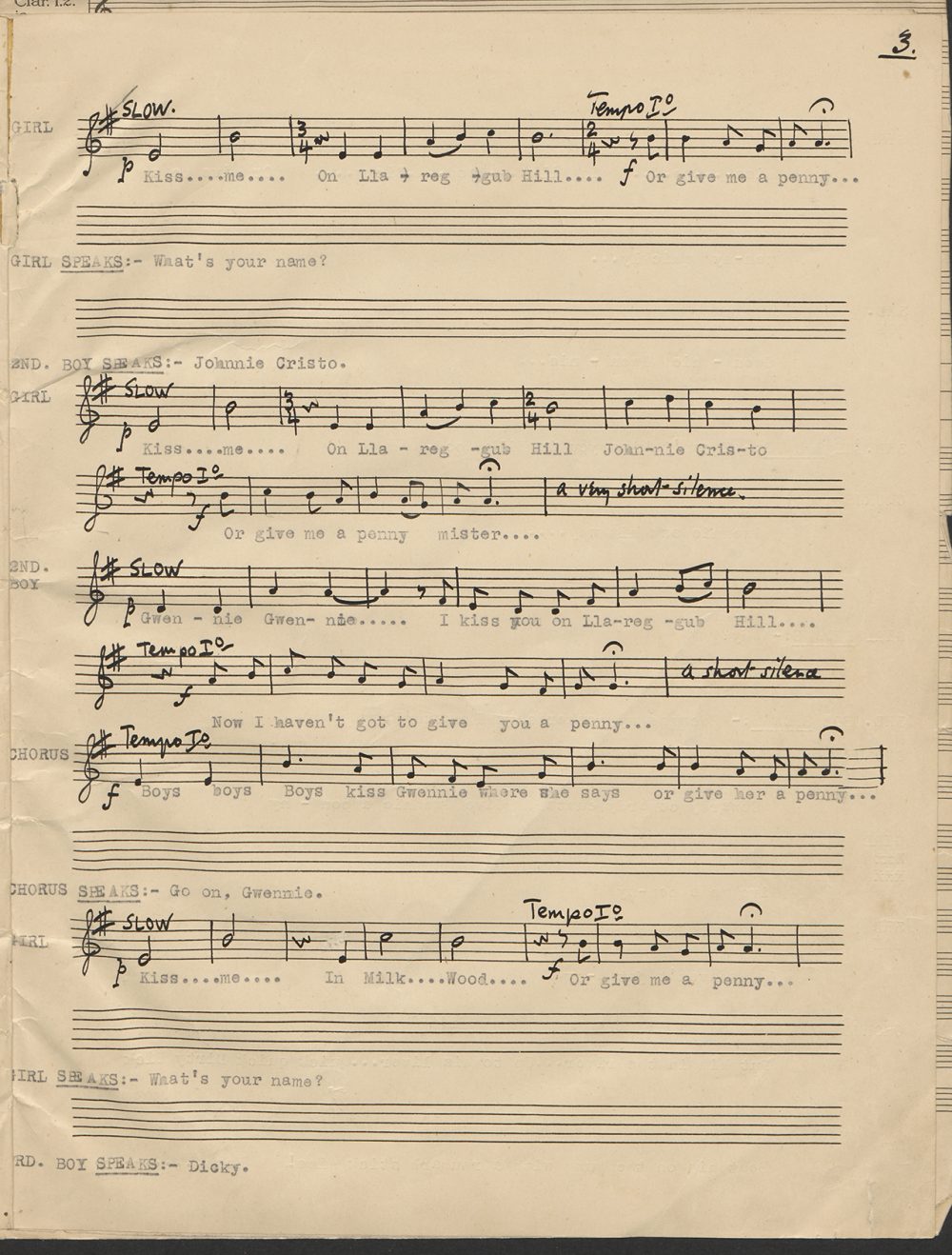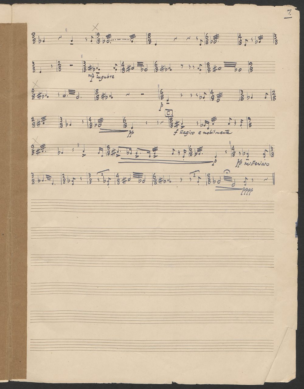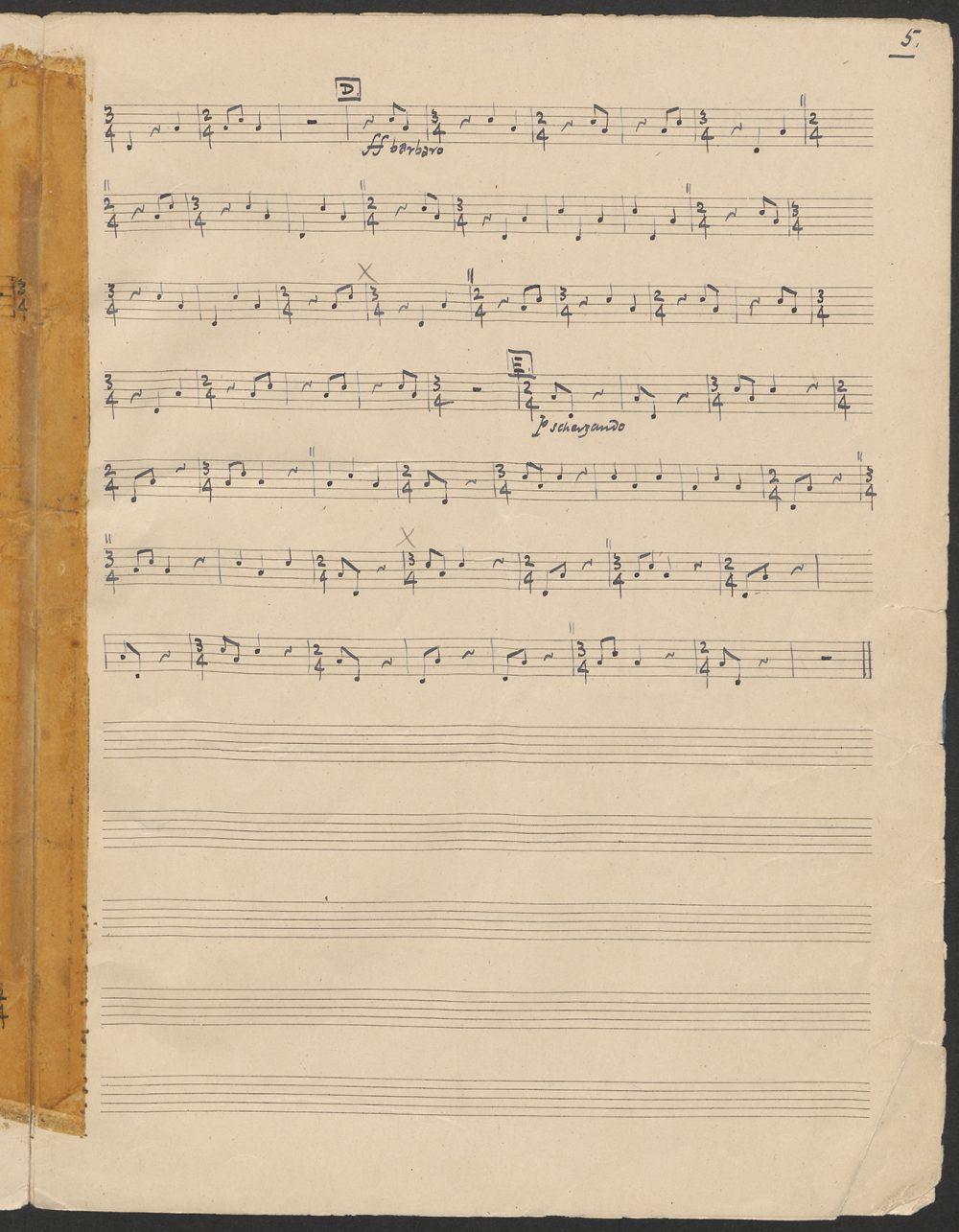 Chamber music was central to Jones’s work. Surprisingly for such a fine pianist, he wrote little for the instrument after discarding a considerable body of works composed in his youth. His first set of Bagatelles was composed during 1943-5 and explores a wide range of emotions and pianist textures. In this manusctript, II-V correspond to 1-4 in the published edition. I and VI were not published although VI was recorded by Llŷr Williams on the disc of Bagetelles by Tŷ Cerdd.