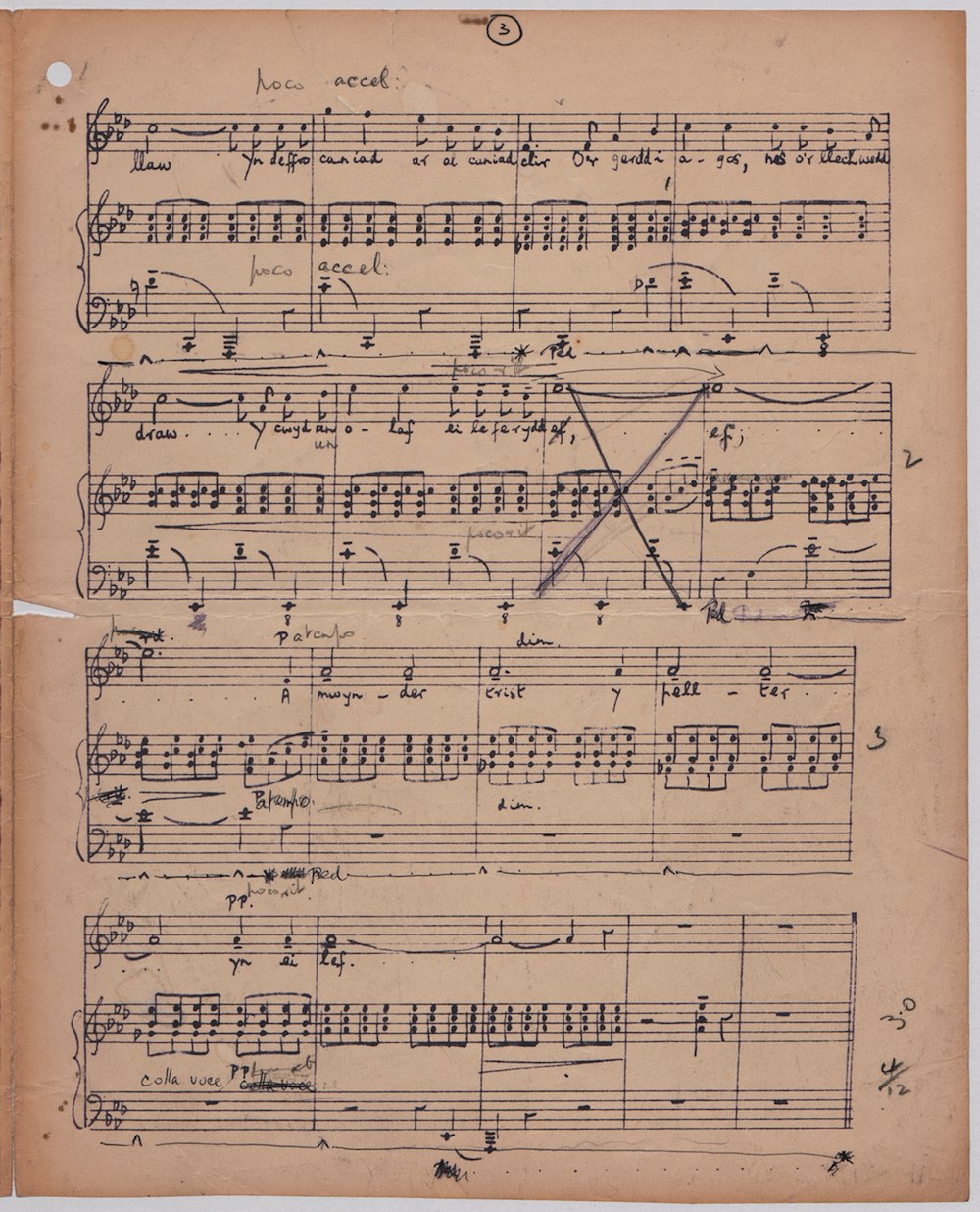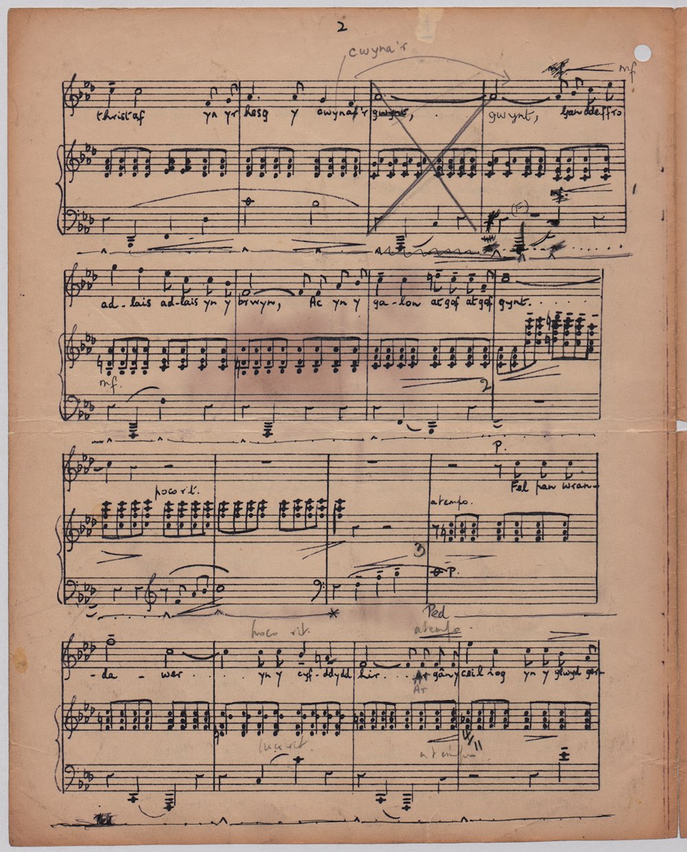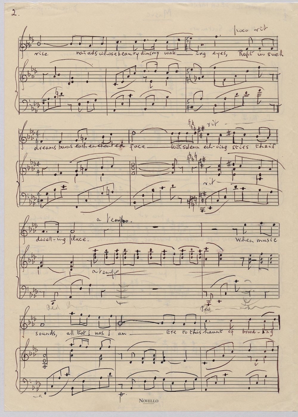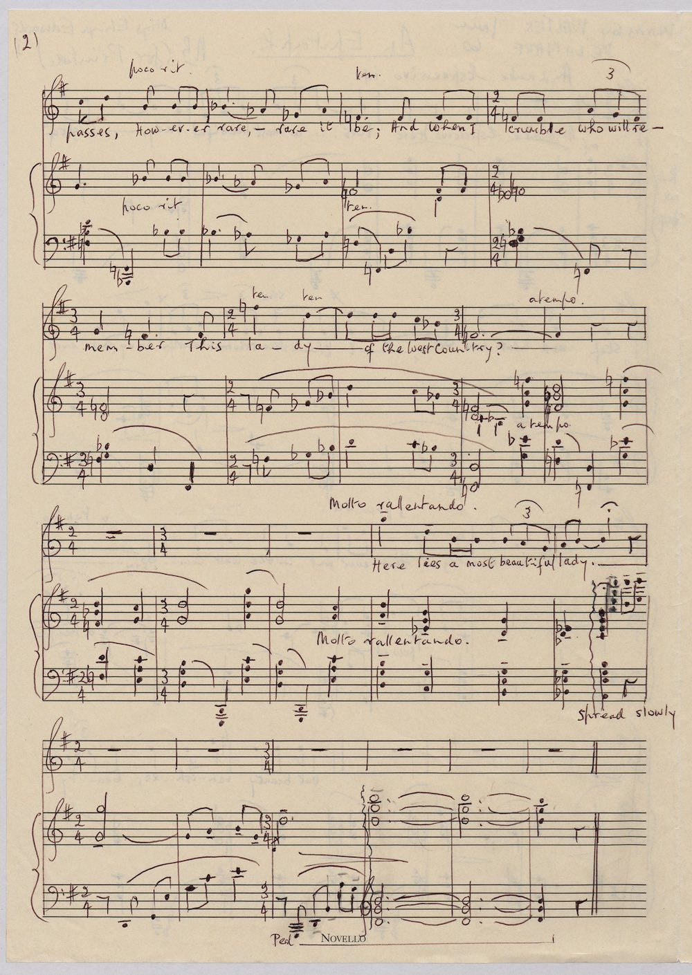 Walter de la Mare, yn ddi-os, oedd un o hoff feirdd Dilys Elwyn-Edwards – serch a daniwyd gan ei hoffter cychwynnol o gân ddigyffelyb Herbert Howells, King David, a threfniannau eraill o’i gerddi allan o’r gyfrol Peacock Pie. Yn ystod ei chyfnod yn astudio gyda Howells ym mlynyddoedd cynnar yr 1950au, byddai Howells yn aml yn ei hannog i osod cerddi gan rai o’i hoff awduron ef ei hun; un enghraifft nodedig o hyn oedd y rhan-gân hyfryd, All that’s Past, a gyhoeddwyd wedi hynny gan Novello a’i chynnwys fel atodiad yn y Musical Times. Ar ôl dychwelyd i Gymru ym mlynyddoedd olaf yr 1950au, roedd yn anorfod, yn ôl pob tebyg, mai gosod cerddi Cymraeg (yn hytrach na rhai Saesneg) wnâi Dilys, oherwydd arferai ymateb yn hynod naturiol i geisiadau neu gomisiynau am gerddoriaeth, a heb ysgogiad o’r fath cymharol brin yw’r hyn a gyfansoddwyd ganddi. Felly, yn 2001, pan dderbyniodd gomisiwn i gyfansoddi rhai caneuon ar gyfer Gŵyl Cricieth, i’w canu gan y soprano Rosamund Shelley, trodd Dilys, yn gwbl nodweddiadol, at de la Mare am y ddwy gân gaboledig a myfyriol hyn. Yn dilyn ei marwolaeth serch hynny, profiad dadlennol i fi – fel ei hysgutor cerddorol – oedd darganfod ei bod mewn gwirionedd wedi gosod An Epitaph nifer o flynyddoedd cyn hynny, heb fod ganddi unrhyw berfformiad mewn golwg, ond yn unig ar gyfer ei difyrrwch personol. Adeg y cyngerdd yng Nghricieth, ni soniodd ddim am hyn ac roedd yn brofiad teimladwy i ganfod – wrth edrych yn ôl – bod y gosodiad diweddarach yn amlwg wahanol o ran tôn. Myfyrdod ar ddiflaniad amser a phyliad harddwch, rywsut, oedd y gân berffaith fyddai’n gweithredu’n ddiarwybod fel cân ffarwel ynddi’i hun.