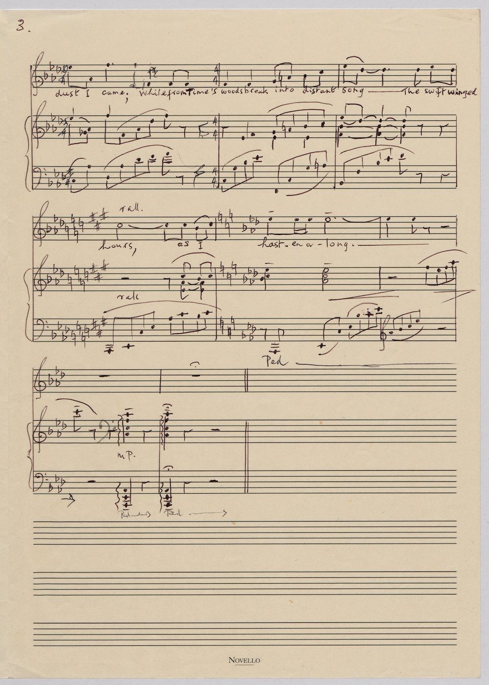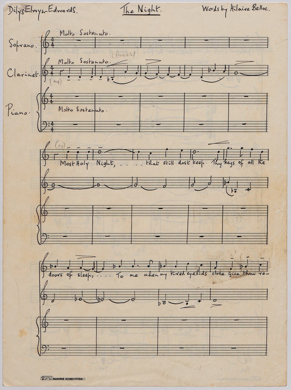 Er bod llawer o’i chaneuon a’i gweithiau corawl wedi’u cyhoeddi yn ystod ei bywyd, cadwodd Dilys Elwyn-Edwards stoc go sylweddol o gerddoriaeth dan gêl. Roedd rhesymau amrywiol dros hyn -byddai’n anhapus weithiau gyda’r perfformiadau a roddwyd o rai o’r cyfansoddiadau ac o’r herwydd roedd yn gyndyn i’w rhyddhau heb fynd ati i ddiwygio neu i ailysgrifennu. Mae’n bosib mai ar gyfer cyfuniadau offerynnol llai gwerthadwy y lluniwyd cyfansoddiadau eraill ac roedd y cyhoeddwyr eu hunain felly yn amharod i’w derbyn. Yn yr achos hwn, mae’r tair cân i soprano, clarinét a phiano yn perthyn i’r categori olaf hyn. Yn ystod ei blynyddoedd gyda Herbert Howells yn y Coleg Cerdd Brenhinol, bu Dilys yn gosod llawer o gerddi Saesneg, a hynny gyda chryn ddirnadaeth a hyblygrwydd naturiol; mae hi i’w gweld ar ei gorau yn y tair enghraifft dan sylw.
