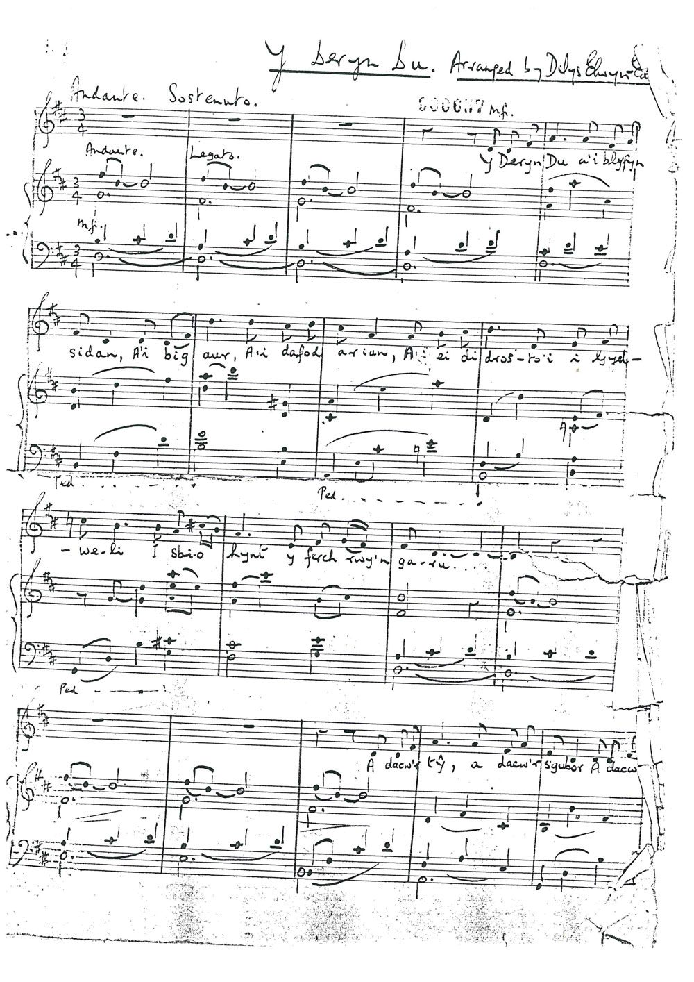 Ble bynnag y caiff caneuon Cymraeg eu perfformio, mae’n bur debyg y bydd caneuon Dilys Elwyn-Edwards yn eu plith. Pan fu farw ym mis Ionawr 2012, roedd hi wedi ennill bri fel un o gyfansoddwyr enwocaf ei chyfnod ac uchaf ei pharch ym myd y gân Gymraeg. Treuliodd y rhan fwyaf o’i hoes yng Nghaernarfon, ar lannau’r Fenai, ac yno cynhyrchodd gasgliad bychan o gyfansoddiadau, ond cyfansoddiadau cain serch hynny, a’r cyfan ohonynt bron ym myd y gân, ac mae nifer o’r rheiny bellach wedi dod yn glasuron yn repertoire y gân Gymraeg.