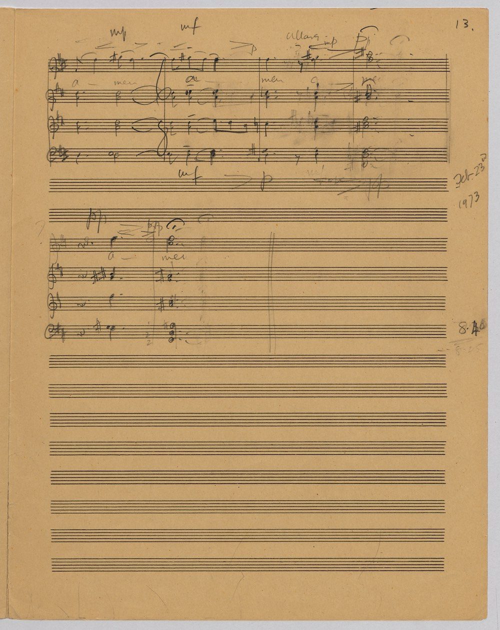 Yn ystod ei blynyddoedd olaf, dechreuodd Williams ddangos mwy o ddiddordeb mewn cyfansoddi rhagor o gerddoriaeth gorawl a lleisiol. Mae ei chyfres gorawl The Dancers (1951) yn enghraifft ddisglair o’i medrusrwydd wrth ymdrin â’r cyfrwng corawl ac felly hefyd ei Ave Maris Stella (1973) cywrain ar gyfer corws cymysg. Perthyn nifer o’i gweithiau sylweddol gorau ar gyfer lleisiau i’r cyfnod hwn hefyd ac yn eu plith yr opera gomig wych The Parlour (1966), y Missa Cambrensis i unawdwyr, corws a cherddorfa (1971) a’r aria gywrain Fairest of Stars (1973) i soprano a cherddorfa.
