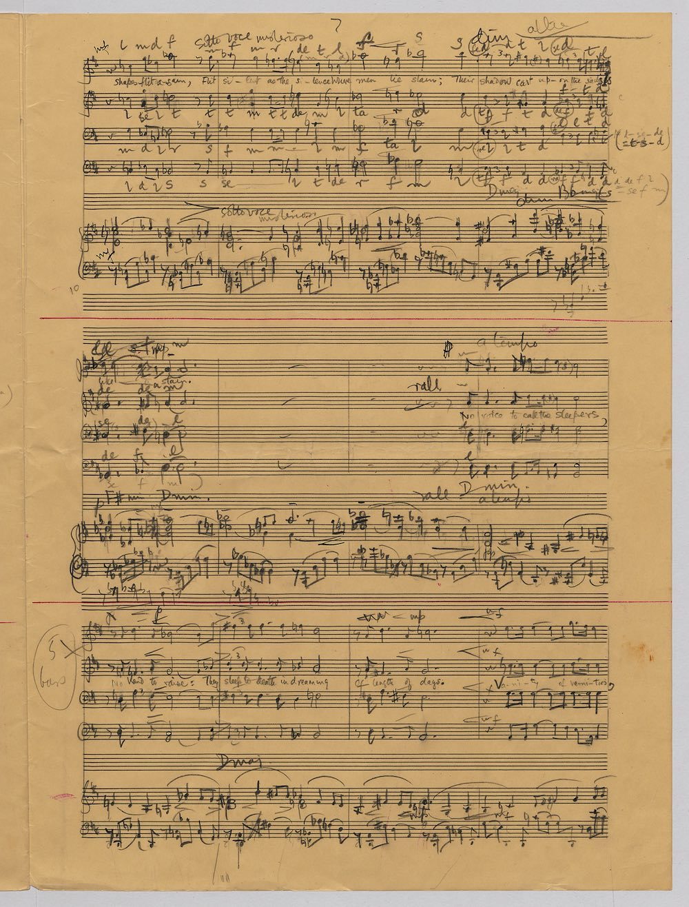 Cyfansoddwyd y darn sylweddol hwn i gôr meibion a phiano – darn sy’n para ychydig yn llai na 9 munud – ar gyfer lleisiau enwog Côr Meibion Treorci. Christina Rossetti yw awdur y geiriau – gwraig a gofir yn bennaf, yn ôl pob tebyg, am iddi lunio’r garol Nadolig “In the Bleak Mid-winter”. Trefniant synhwyrus, cwbl nodweddiadol o’r gyfansoddwraig, ar gyfer lleisiau 4 rhan gyda rhai israniadau yw Sleep at Sea. Mae’r ddelweddaeth o drai a llanw’r môr yn fythol bresennol yn rhan donnog y piano ac yn yr harmonïau cyfnewidiol sydd eto’n gwbl resymegol bob tro.
