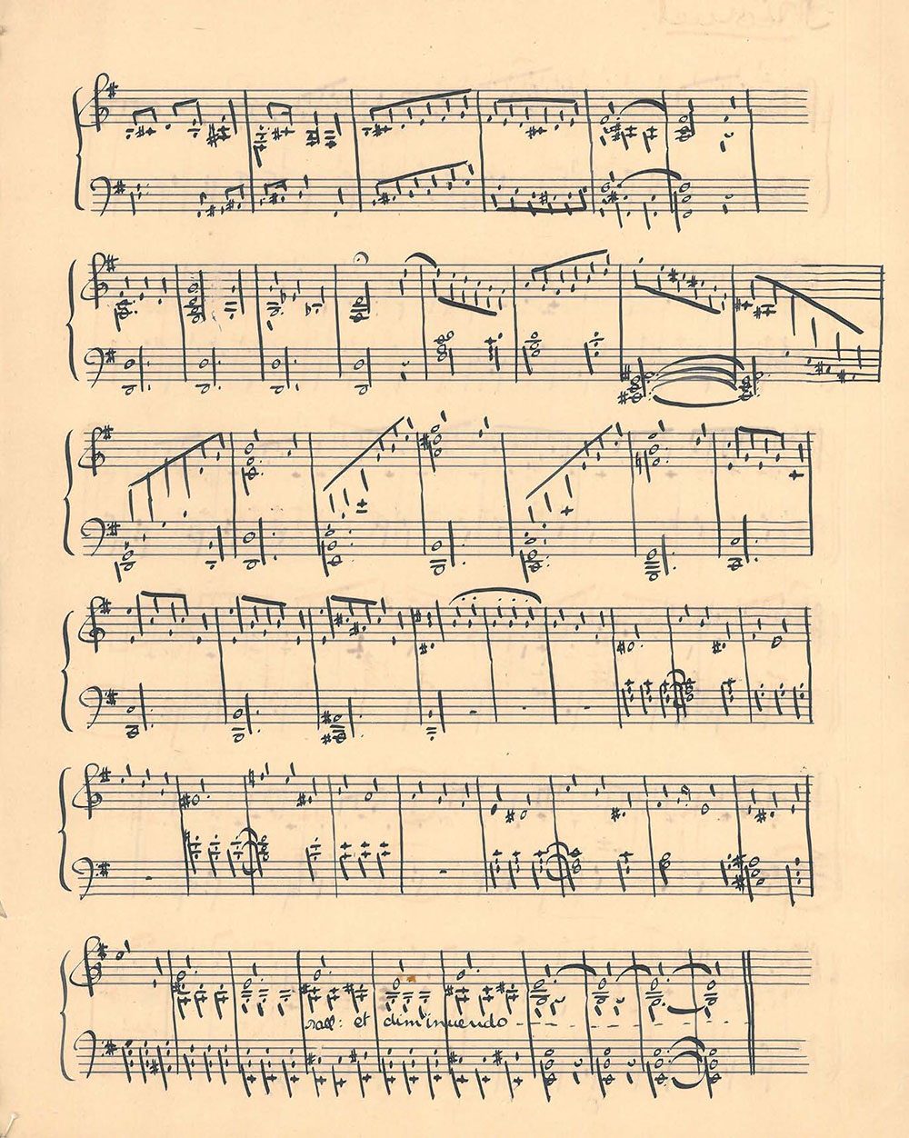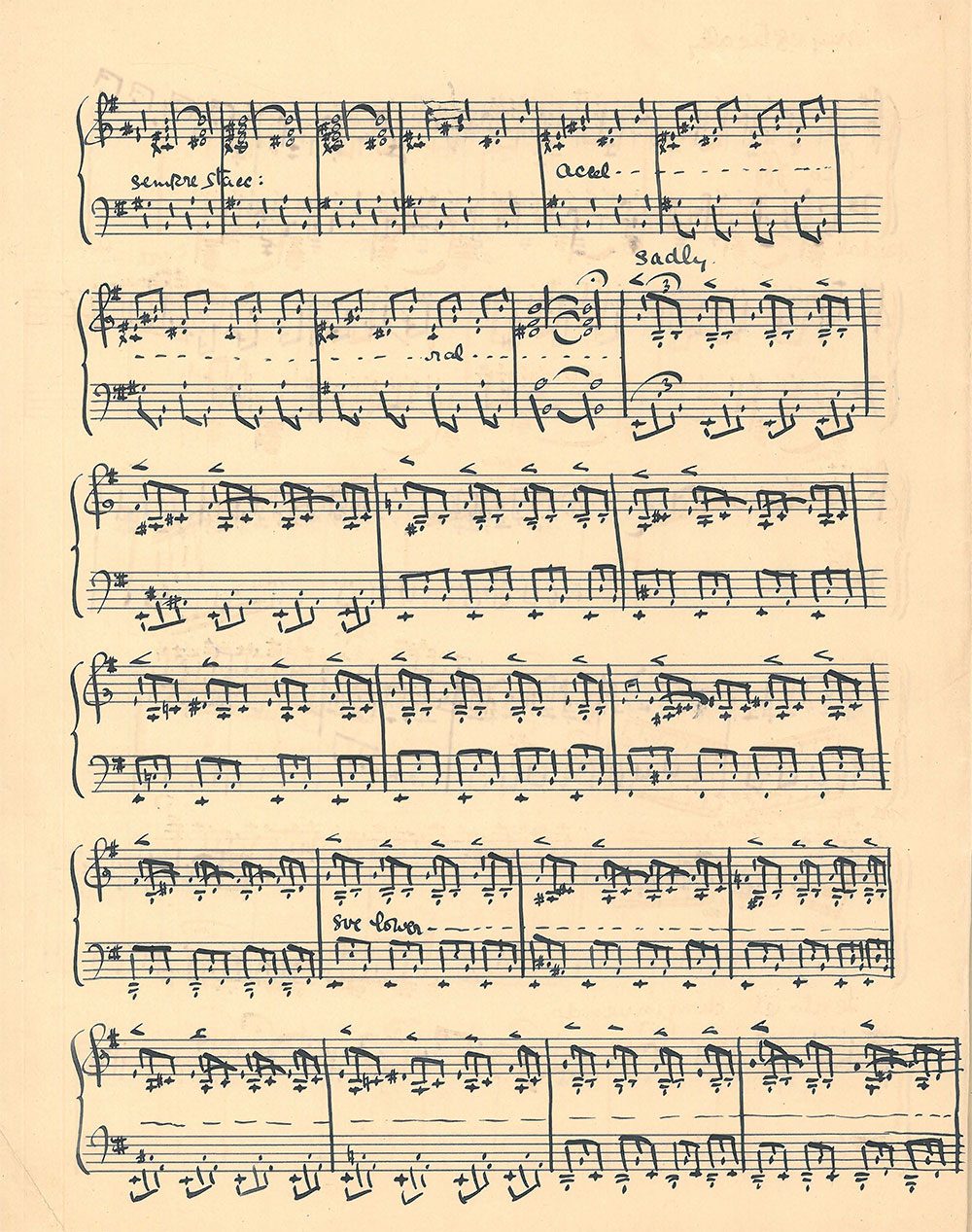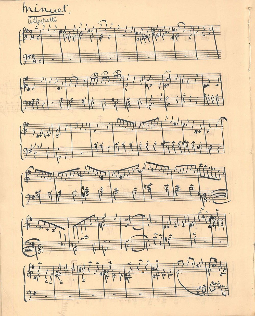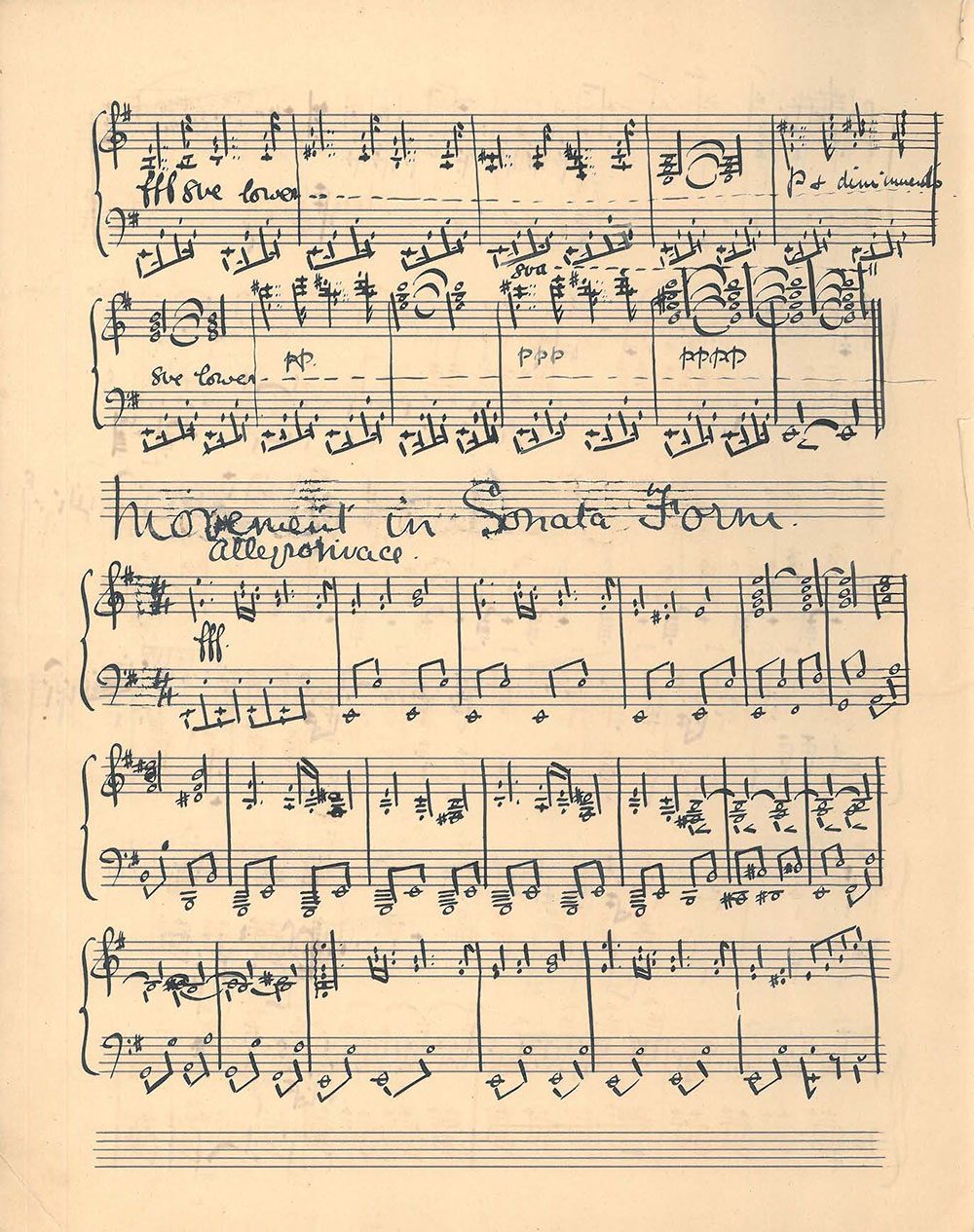 The Piano Sonata in E minor was completed in April 1910 during Morfydd Owen’s first year as a student at the University College of South Wales and Monmouthshire. It was her first full scale composition, cast in four movements (Grave, Allegro vivace, Minuet & Trio and Finale – Moderato). Stylistically, this is still very much a student exercise in Classical forms. The initial Grave and subsequent Allegro Vivace (marked in the score as ‘Movement in Sonata Form’) show the influence of Beethoven’s Pathétique Sonata and it is possible the work as a whole might have been written as a first year composition exercise.