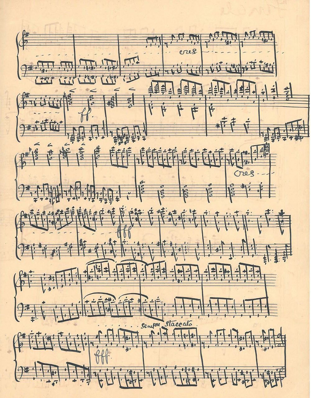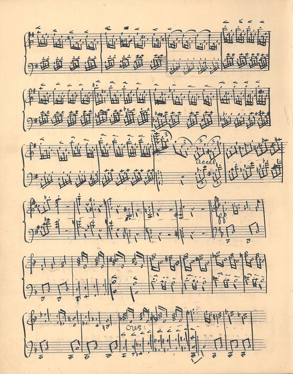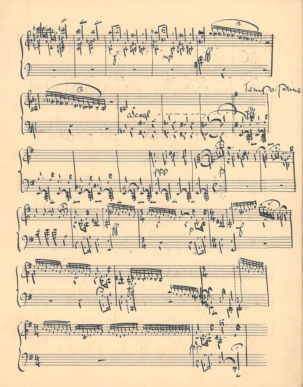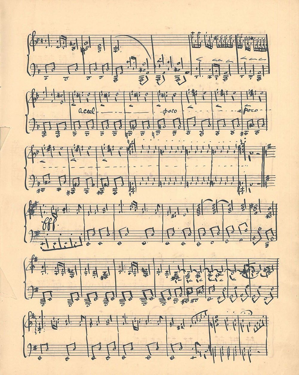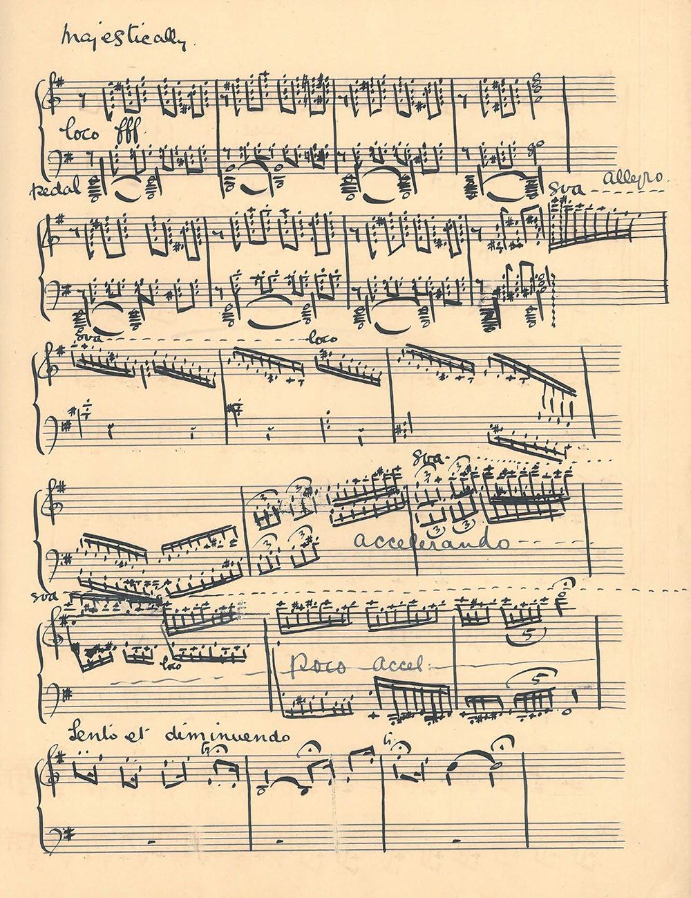 The Piano Sonata in E minor was completed in April 1910 during Morfydd Owen’s first year as a student at the University College of South Wales and Monmouthshire. It was her first full scale composition, cast in four movements (Grave, Allegro vivace, Minuet & Trio and Finale – Moderato). Stylistically, this is still very much a student exercise in Classical forms. The initial Grave and subsequent Allegro Vivace (marked in the score as ‘Movement in Sonata Form’) show the influence of Beethoven’s Pathétique Sonata and it is possible the work as a whole might have been written as a first year composition exercise.