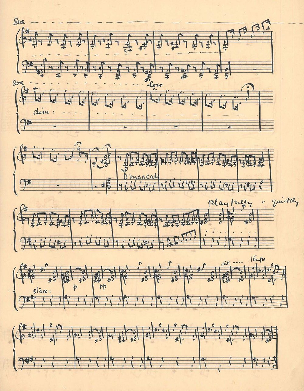 This short prelude dating from October 1914 is one of several piano works composed by Morfydd Owen at this period. It is interesting to note that it is not only in the same key as the early 1910 Sonata, but also shows certain similarities, though the music has far greater maturity and sophistication, as can be seen in the non-functional augmented harmony at the outset. At a later date, the sub-title Beti Bwt has been added.